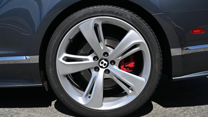 Ventilated front and rear disc brakes with red brake calipers